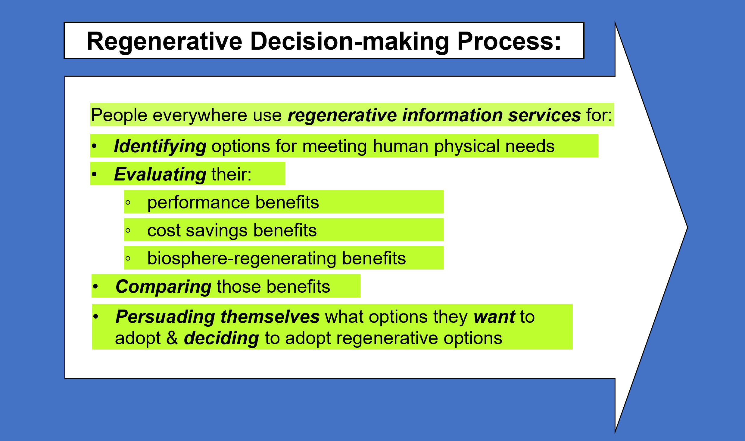 To put Drawdown into global operation for “ending the climate crisis in one generation” – and to create a “regenerative economy” on a scale of $100 trillion of avoided cost savings – I invented a process – called “regenerative decision-making” – through which people everywhere use “regenerative information services” for …