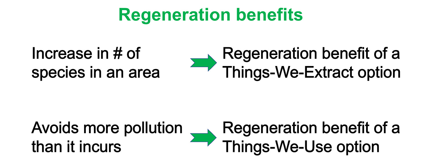 That lessened pollution – measured by an option avoiding more pollution than it incurs – may be called a “regeneration benefit” of a Things-We-Use option …